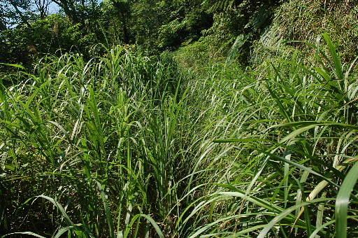 水泥大空地,續往上小段之後,轉為廢產道,芒草漸多。H341m |