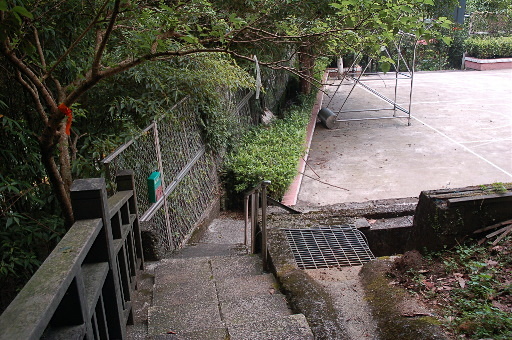 籃球場,右線的出口在球場另一端,設有千階嶺步道牌樓。循車道往下。H215m |