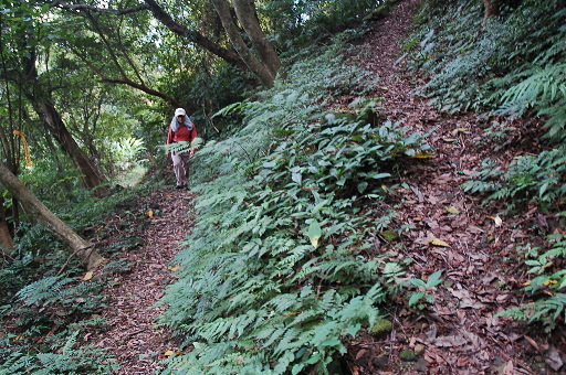 步道上稜,稍後仍行於稜線兩側。H278m |