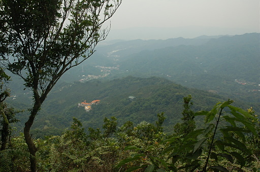 鞍部叉路,左上循稜往竹崙山約40分,直下往三層坪、大厝坑山、竹崙山,右側可眺望竹崙的鳥嘴尖。取左較快,山路接近小山頭再轉下行至登山口。H486m |