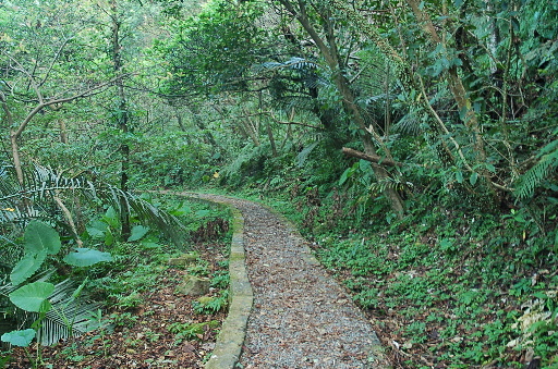 三貂嶺瀑布步道入口,位於已廢校的碩仁國小旁,跨越鐵道進入,步道全長2.2K。一開始是民宅區,沿途皆有標示往上走。不久轉為平緩好走的碎石步道。H112m |