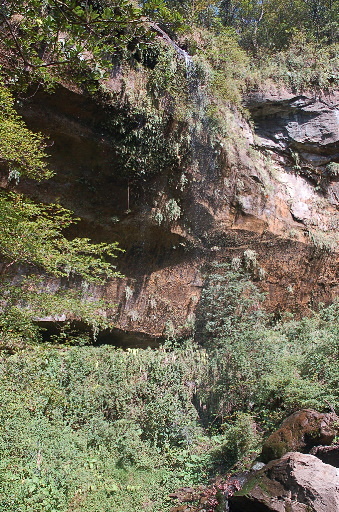 摩天瀑布,瀑布前的觀瀑台已破損,瀑布水量極少。續行往枇杷洞瀑布。H205m |