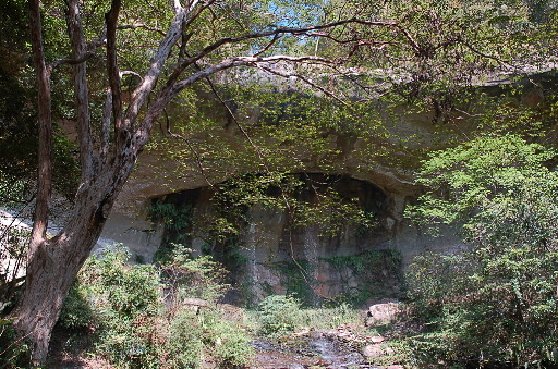 枇杷洞瀑布,瀑布水量跟摩天瀑布一樣少。此處溪流平坦,適合休息。H245m |