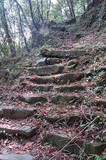 大平山腰古道越嶺點,古道再慢慢降至北勢溪右岸,沿途有很多駁坎地,古道路況佳。H446m |