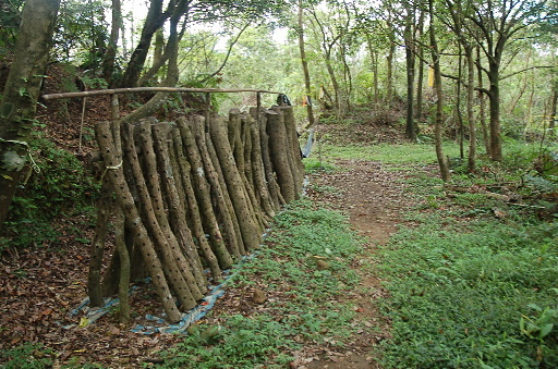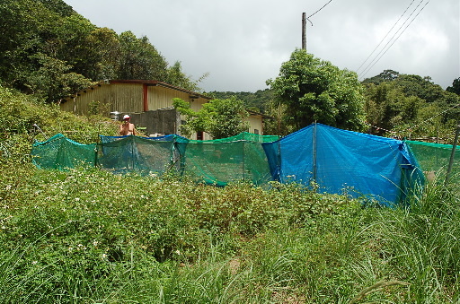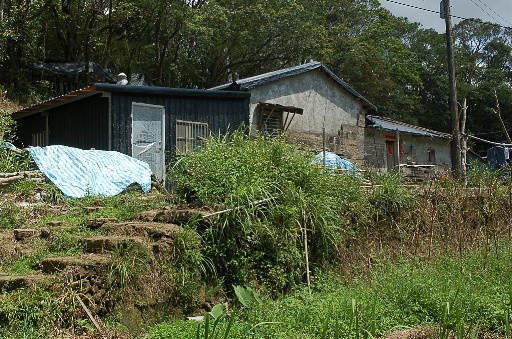 大平28號民宅,主人引導跨過圍籬。此處位於竿蓁坑產道路底,順便問一下地名的由來,全台各地有很多竿蓁、竿林類的地名,一般認為指的是芒草地。H483m |
