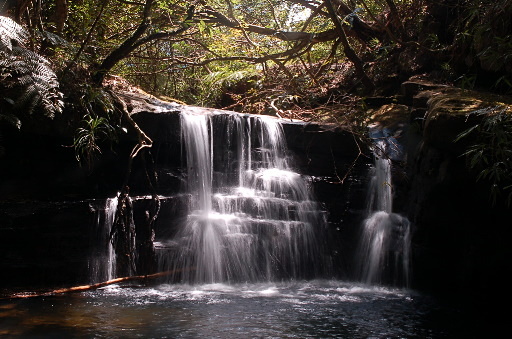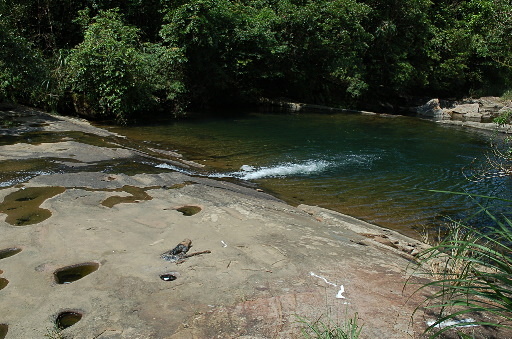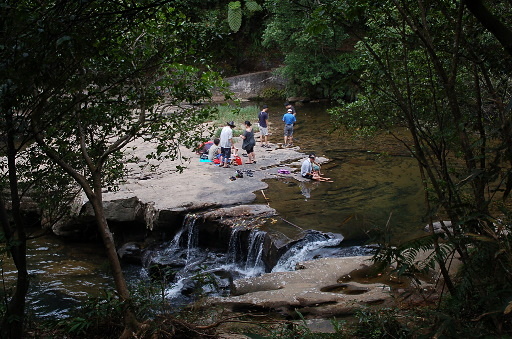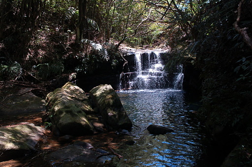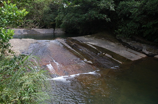 合流瀑布,位於支流上,瀑布僅約兩公尺高而已,但下方的潭水乾淨深邃,還不錯。休息。H455m |