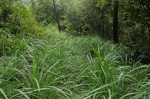 過鐵門後叉路,直行大土路可出竿蓁坑產道,取右往大平28號,路徑較小條。稍後經短暫水泥路。接近大平28號時路徑多芒草,但不礙事。H478m |