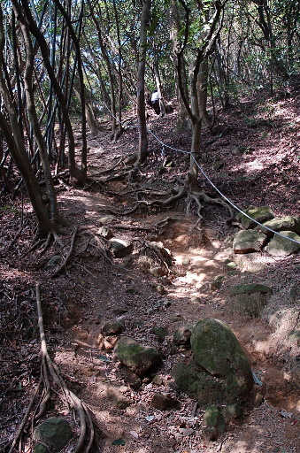 陡上完畢空地,竹林邊為鶯歌石山舊路,路跡已不清,忘了還有新路可走,硬闖而上。很快就接上新路,輕鬆登頂。H150m |