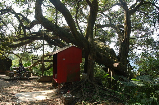 回到產道路底觀景台,望湖山叉路,取右回千年大榕樹。H343m |