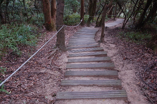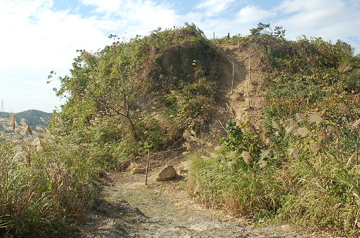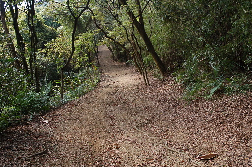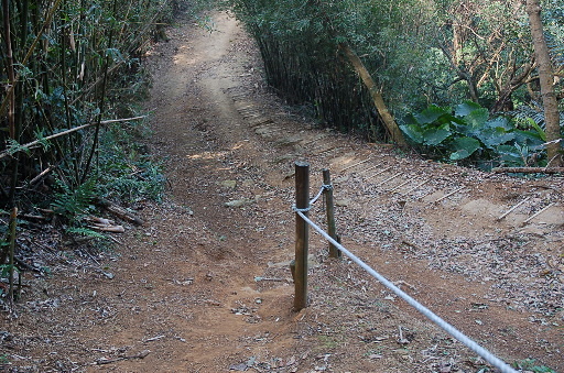 續行,循步道下往大竹園,有點陡峭。不久轉為寬平好走的土路。 |