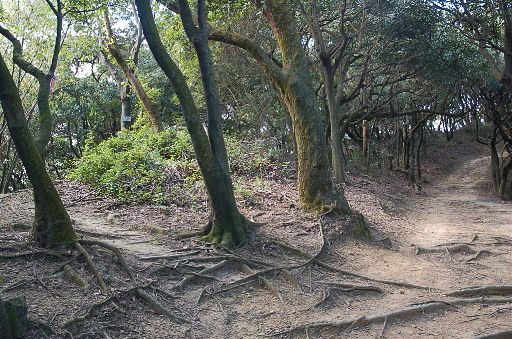 鶯歌石、妙善寺叉路,接上主稜步道,左往忠義宮、忠義山,右往千年樹、牛灶坑山。取右。主稜步道更寬大好走。H206m |