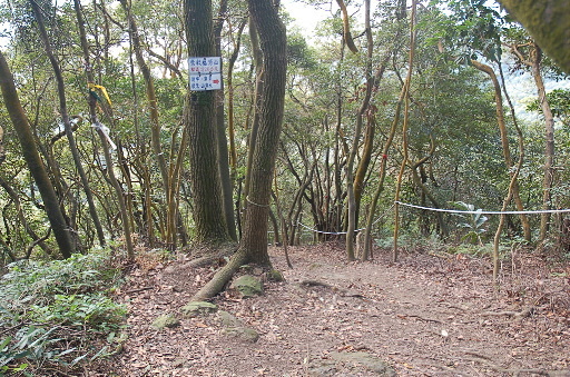 妙善宮叉路,鶯歌石步道與妙善步道在此交錯,左下步道往妙善宮,直行或右上皆可接上主稜。妙善宮似乎不喜山友借道,左下步道無指標,且被粗繩封鎖。取右上較快。H194m |