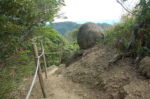 鶯歌石,100m,無基石。觀景台位於奇岩旁。展望不錯,可俯瞰鶯歌地區、遠眺三峽鳶山。續行的步道轉為土坡自然步道,陡上拉繩。H113m |