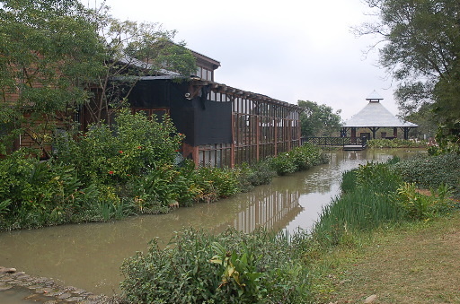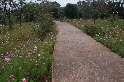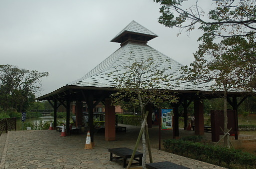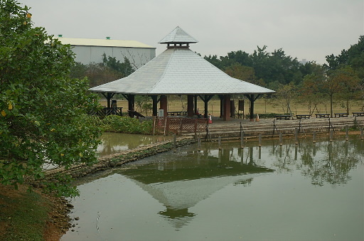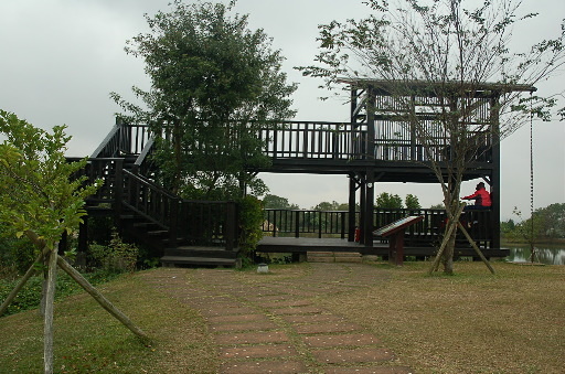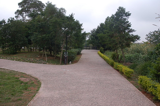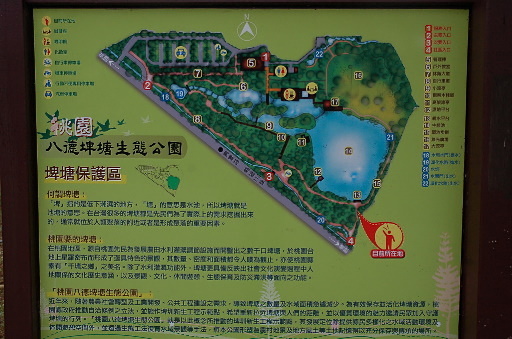 八德埤塘公園北端入口,進入步道。顧名思義,這座公園是以一座埤塘為中心建設而成的,環境營造得頗不錯,值得一遊。除了涼亭與觀景台之外,園區內還有一家頗負盛名的餐廳,TINA廚房(八德店),非假日的午餐時刻仍有頗多遊客用餐。H131m |