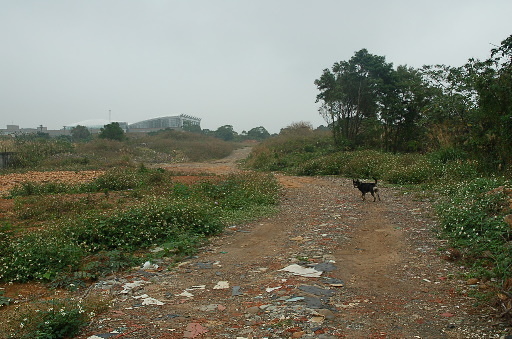 三山國王廟,直行繞過廟的後方,自然轉為土石車道往空地。H140m |
