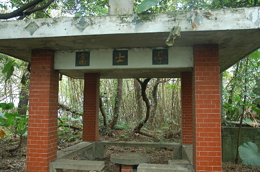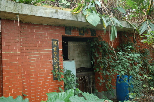 車道路底,已接近山頂,找較好通行的坡面登頂。登頂前遇廢棄建築,原是一座小廟,太陽宮。H123m |