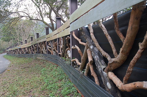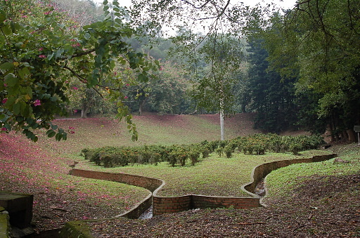 續行,產道轉為下坡。這附近有座稱為豁然的豪華農莊區,其圍牆頗具特色。 |