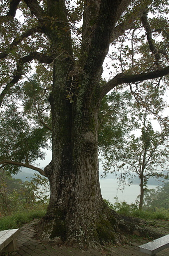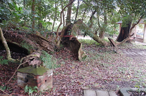 茄苳老樹,設有涼亭與觀景台,這裡原屬頭份與三灣永和山、大河底等地之間的挑擔古道,老樹旁原有茶亭與小土地廟,可惜老樹已崩裂倒塌,茶亭與小廟已不存。H133m |