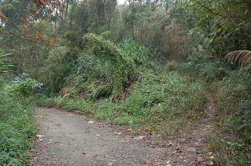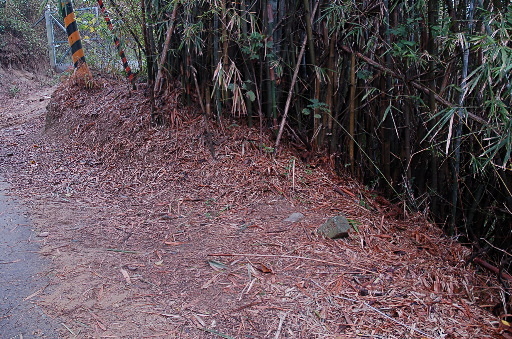 人字山登山口,位於產道右彎處,有根圓形鐵柱,不見任何登山路條,顯見其冷門程度,但進入後稜線山路其實還算好走。不久來到桂竹林區,倒竹多,得用刀清除路障。後段離開竹林,路況轉佳,仍舊循稜而行。即將登頂前,山路轉右腰繞,及時察覺,抓方向從側邊直上山頂。H130m |