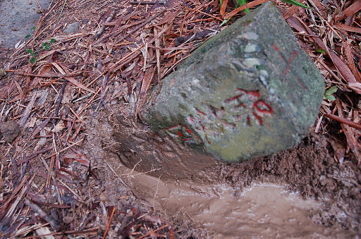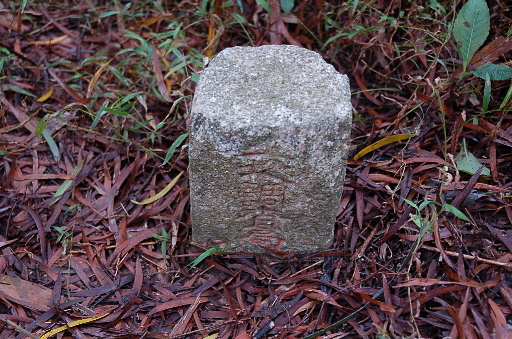 東興水庫水源保護區界4號,台灣省政府民國73年設立,位於路旁竹叢邊,傾倒且半埋入土。永和山水庫原稱東興水庫,南庄山區有很多這種水源基石。難得偶遇,雖然今天帶的飲水不多,仍捐了一半來清洗挖掘出來的編號部份。H157m |