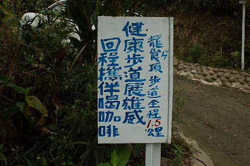 紫彩蝶咖啡,這裡往三灣之展望極佳,店前還寫說:龍崀(ㄣˇ)頂步道全程1.5公里,健康步道展雄威、回程攜伴喝咖啡。 |