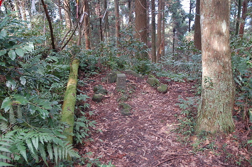 續行,決定探一下基石處略偏左循稜而下的山路。稜線山路有點冷門,但注意路條即可,無須開路。 |