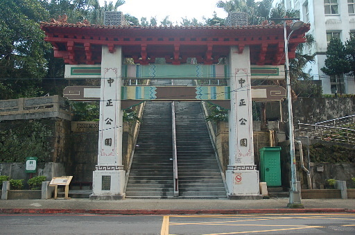 回到中正公園牌樓,『原為日治時代基隆神社之鳥居,戰後以外包方式形成今日中式牌樓風貌,公園前兩個鳥居與樓梯係為當時進入神社的表參道。』H3m |