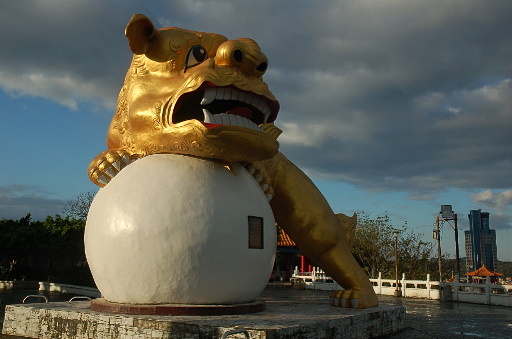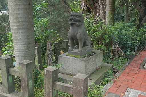 忠烈祠,原為基隆神社,『明治44年(1911年),日本政府在此建神社,奉祀大物主命、崇德天皇二神,初名為基隆金刀比羅神社(祭祀航海守護神);大正3年(1914年)後,合祀天照大神、造化三神、北白川宮能久親王,改稱基隆神社。...』牌樓旁一對的高麗犬為神社主要的遺跡。H29m |