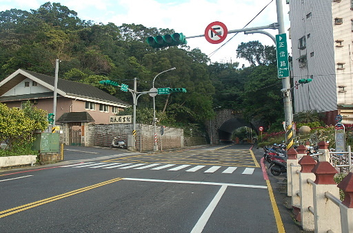 周氏圖書館,叉路,直行過正信隧道往豐稔街,右仍為正信路,取右。H55m |