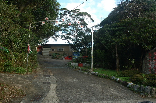 二砂灣砲台叉路,左往二砂灣砲台、海門天險、十八羅漢洞,右往體育館,取右。H78m |