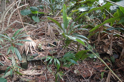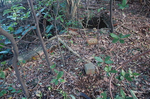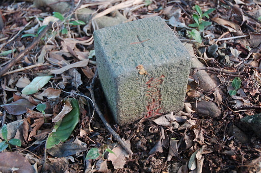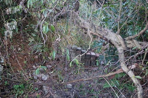 07:48 半倒樹木下堆疊的水泥磚,進入往探綠丘砲台。 |