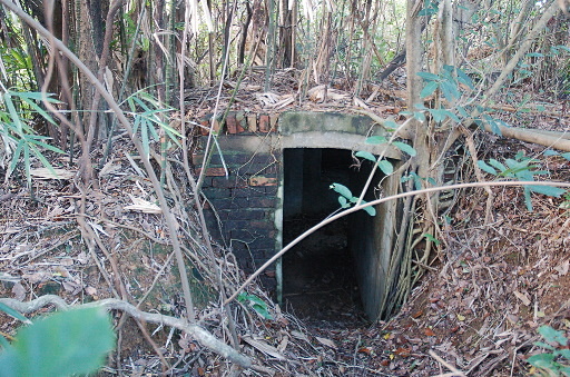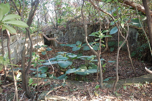 機槍陣地,位於整個砲台中間位置,有好幾個相連的小陣地。續行的稜線山路路況較差,偶爾就借道稜線下方的樹林穿越。H106m |