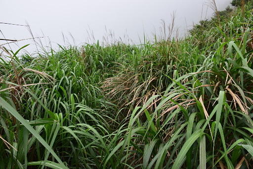 煙囪山,454m,無基石,無山頂標示牌。山頂全是芒草,展望本佳,可惜此刻雲霧籠罩,又有許多小蟲亂飛擾人。H445m |