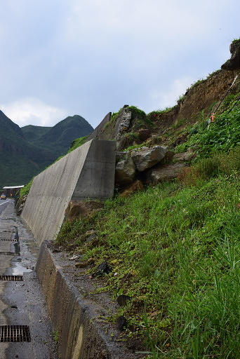 黃金池新登山口,位於上方崩塌的擋土牆邊,路條頗多。舊登山口要再往前一點點,過去看了一下,發現山路已不清,且無路條。退回新登山口,循崩塌區山路往上,上去之後折回走草地小徑,再循草坡小徑切上台金公司園區內的廢棄道路,這附近是完全廢棄狀態,所以不需要擔心警衛會來干預。這條新路跟我以前所走的路已完全不一樣。H8m |