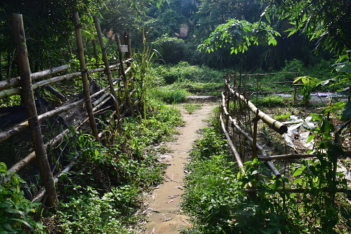 廁所叉路,左側有兩條路,一往廁所,一為水泥路緩上,方向正確,取之上行。 |