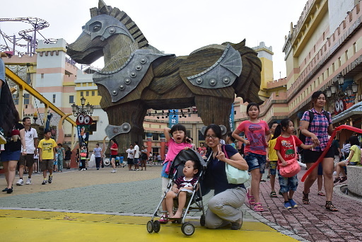 義大遊樂世界,全票899元,由義大購物中心C區末端進入,外頭太熱,且遊樂設施太過刺激,兒童不宜。搭城堡列車直達特洛伊城堡,裡面有眾多適合兒童的室內遊樂設施。 |