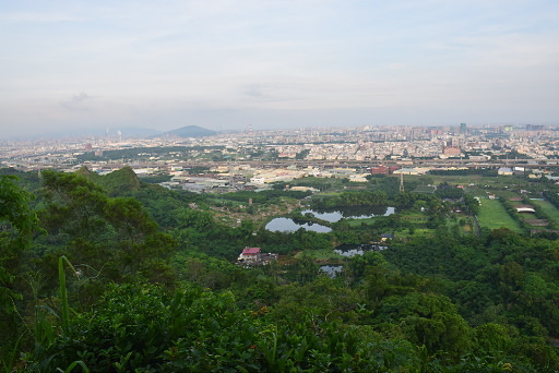 鳳儀宮,水泥階梯步道往觀音山,入口有觀音山導覽圖,步道系統錯綜複雜。步道陡上,展望頗佳,可遠眺半屏山。經過一處鐵梯之後上稜,轉為平緩好走的稜線步道。H72m |