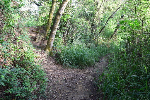 狄斯奈休息區,直行循稜往猴子山,左下步道往陳家墓園,右後步道往瀘之湖,直行。這段稜線步道似乎較少人走,有些雜草,有些蜘蛛網,但大致上路況仍佳。H127m |