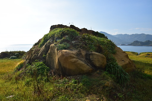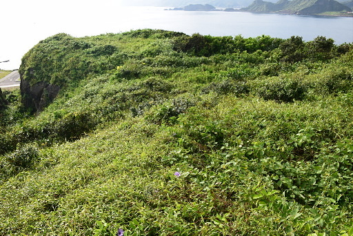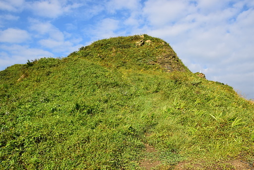 天線山頭,緊鄰濱海公路(台2),展望極佳,可俯瞰長潭里漁港、眺望潮境公園。意外在山頂草叢中發現一座磚造的圓形砲座。H60m |
