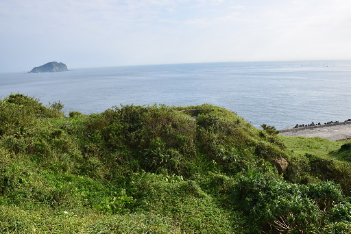 水泥造的圓形砲座遺址,位於第一小山頭。續行往南中間有難以通過的高聳岩壁,只好改朝西側陡降,再上另一小山頭。H52m |