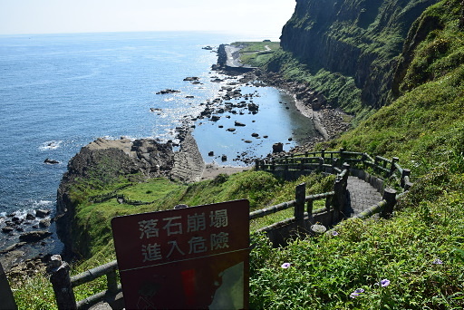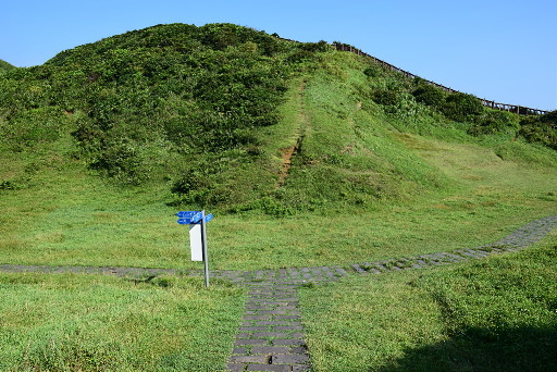 望幽谷草地,步道叉路,左往八斗子漁港、油庫,右往崖邊步道,取右。H41m |