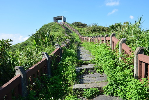 山頂涼亭,展望不錯,可眺望七斗山、基隆嶼。原路退回續前行。H70m |