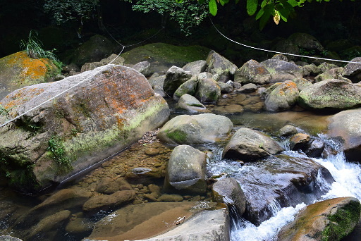 回到五指山古道入口,溪水游泳池旁,休息整裝。H77m |