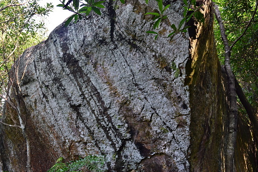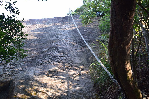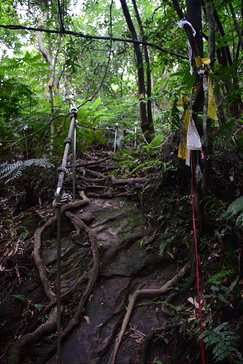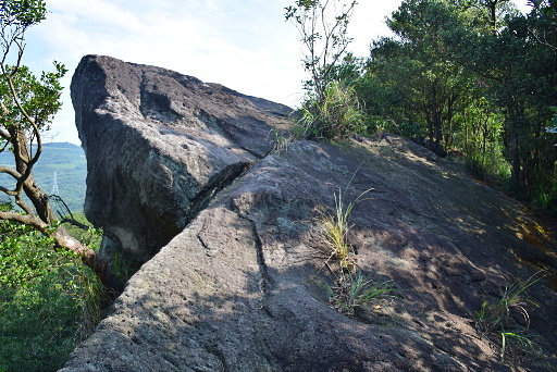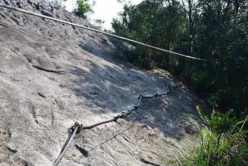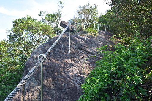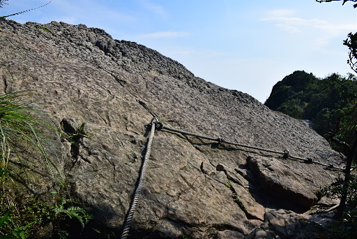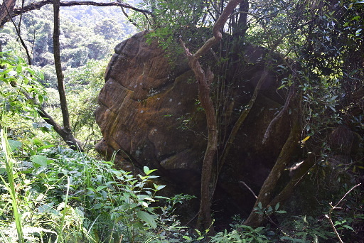 過小溪,山路轉為陡上,架有粗繩,這條山路亦屬步道。此後山路陡上居多,路況仍佳。山路中偶有巨岩,碩大無朋。H115m |