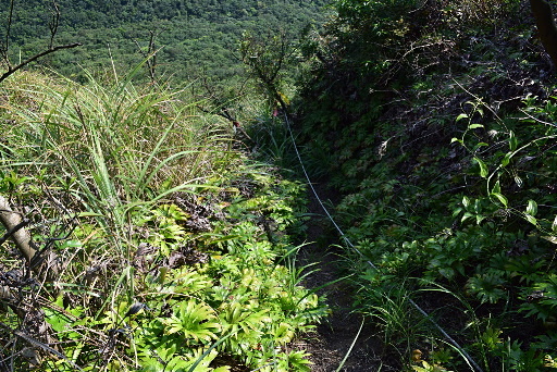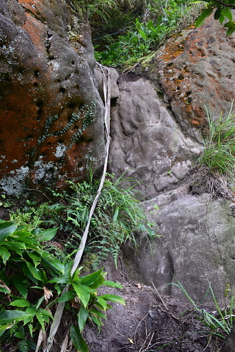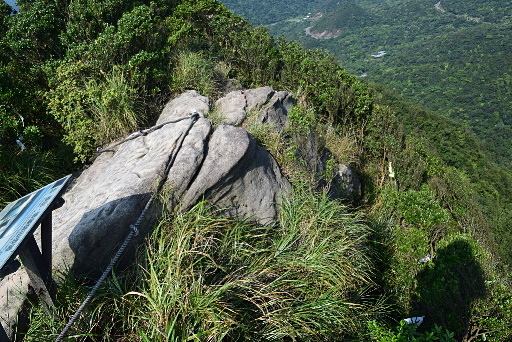 續行,取左下山路往友蚋山方向,稍後即出現小落差,攀繩垂降,不難。 |