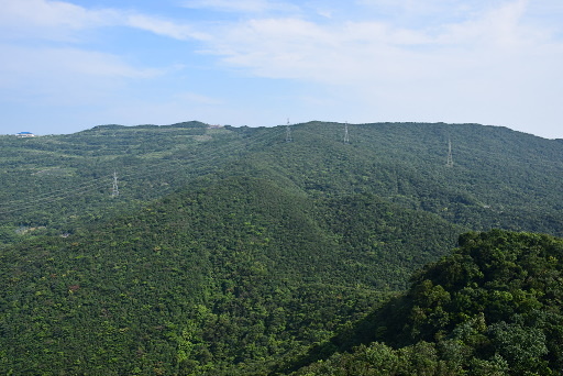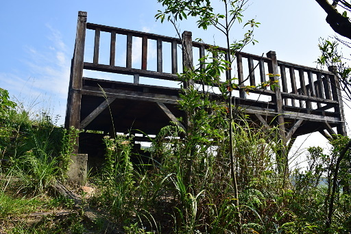 步道終點觀景台,山路出口右上即是七汐產道邊界的無名步道終點觀景台,休息觀景。展望極佳,可眺望新山,而這附近最著名的景點卻是七堵方向的人面奇岩。觀景台已經有點老舊,且無遮蔽,幸好高架的觀景台底下可納涼。H484m |