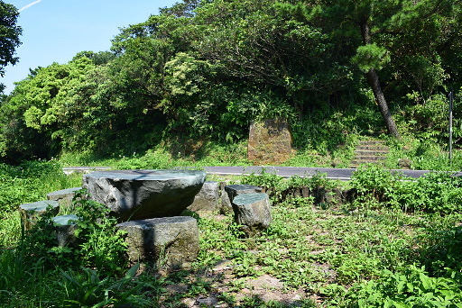 步道口,位於七堵、汐止邊界,設有大理石桌椅,但步道並無命名。對面往上的石階步道往友蚋山約25-30分,今天省略。這條產道的正式名稱為七汐農路,今天又剛好是農曆七夕日,如果把這條步道稱為七汐步道或許能多帶來一些遊客。取左往汐止方向下山。H467m |