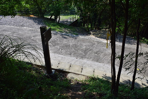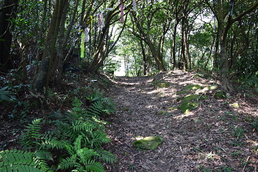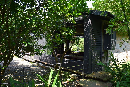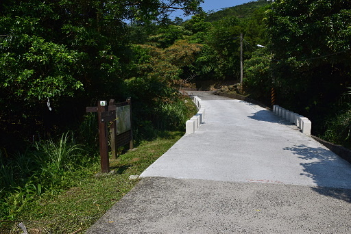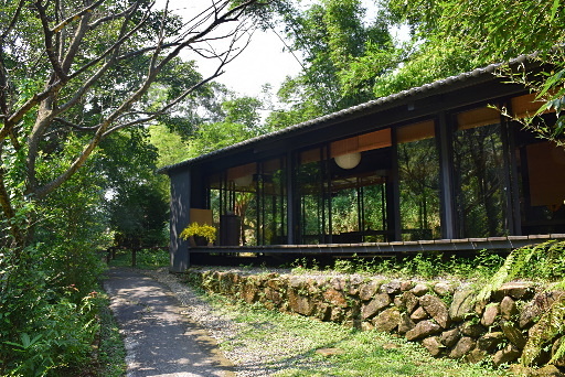 步道穿越產道,左側為停車場,以前得右繞經石頭古厝回古道,現在直接往下有新步道串聯。稍後步道右側可見風景優美的日式禪房,應該是著名的無菜單料理餐廳,食養山房。再往下即見到昔日的石頭古厝,已改頭換面。H287m |