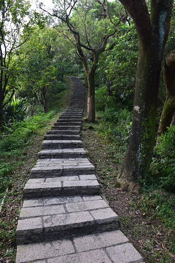 天秀宮,大尖山步道入口位於廟旁咖啡簡餐店邊,循石階步道往大尖山,約0.7K。步道很快上稜後,一路循稜往上,雖有陡坡,但沿途多有樹蔭,清晨走起來頗舒服。時有展望,可俯瞰汐止大部分地區。H240m |