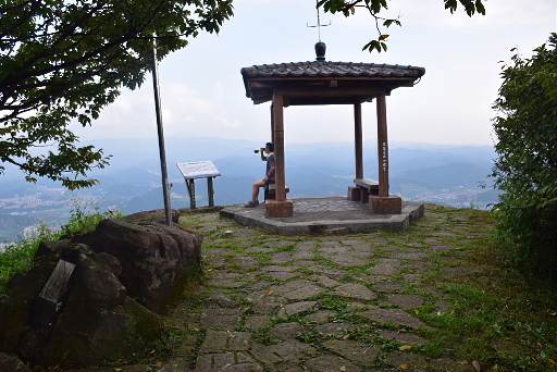四分尾山(茄苳腳山、四分子尾山),641m,二等三角點No.1060、三等三角點八三七號。續行步道只要一分鐘即可下抵四分尾山產道,可續登耳空龜山。山頂展望雖佳,且設有木椅,可惜無遮蔽,無法久待。H642m |